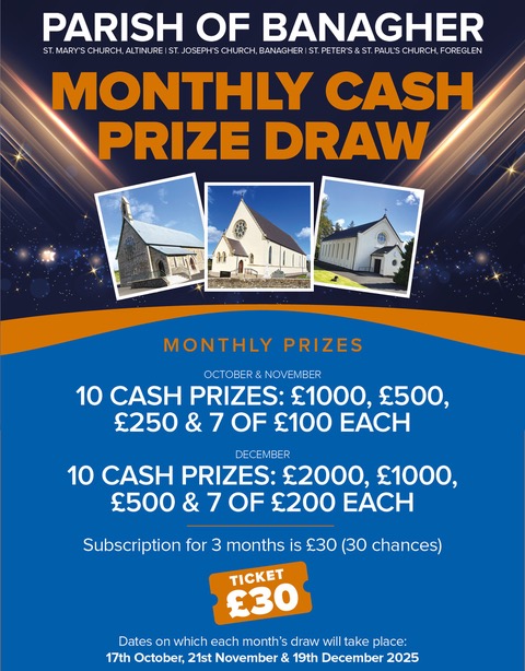 BANAGHER PARISH MONTHLY CASH PRIZE DRAW